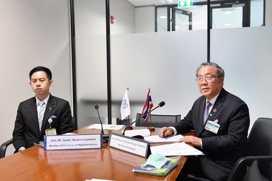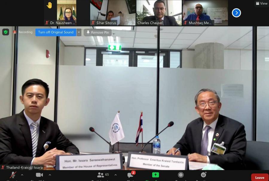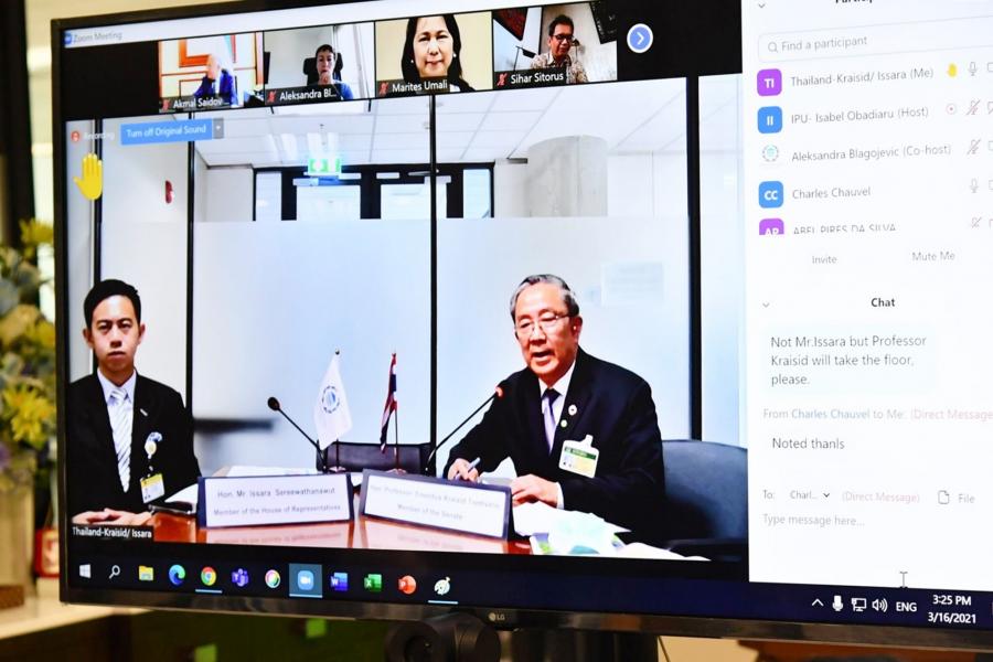 วันอังคารที่ 16 มีนาคม 2564 เวลา 14.00–15.30 นาฬิกา ตามเวลาประเทศไทย ณ ห้องประชุมสำนักองค์การรัฐสภาระหว่างประเทศ ชั้น 3 อาคารรัฐสภา ศ.เกียรติคุณ นพ. ไกรสิทธิ์ ตันติศิรินทร์ สมาชิกวุฒิสภา พร้อมด้วยนายอิสระ เสรีวัฒนวุฒิ สมาชิกสภาผู้แทนราษฎร ในฐานะผู้ดำรงตำแหน่งในคณะกรรมาธิการสามัญสหภาพรัฐสภาว่าด้วยการพัฒนาที่ยั่งยืน เข้าร่วมการสัมมนาออนไลน์ในหัวข้อ “การสร้างอนาคตที่ดีกว่าโดยไม่ทิ้งใครไว้ข้างหลัง : บทบาทของรัฐสภาในการวางยุทธศาสตร์การฟื้นฟูจากโควิด-19  ที่สอดคล้องกับเป้าหมายการพัฒนา      ที่ยั่งยืน” (“Building a better future where nobody is left behind: How can parliaments ensure that COVID-19 recovery strategies are in line with the SDGs?”) จัดโดยสหภาพรัฐสภา (IPU) ร่วมกับคณะกรรมาธิการเศรษฐกิจและสังคมแห่งสหประชาชาติสำหรับเอเชียและแปซิฟิก (UNESCAP) ผ่านโปรแกรมซูม (ZOOM) โดยมีผู้เข้าร่วมการสัมมนากว่า 70 คน จากนานาประเทศในภูมิภาคเอเชียแปซิฟิก