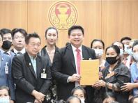 นายสิระ เจนจาคะ ประธานคณะ กมธ. การกฎหมาย การยุติธรรม และสิทธิมนุษยชน และนายชัยยันต์ ผลสุวรรณ์ กมธ. รับยื่นหนังสือจาก ตัวแทนพ่อค้า แม่ค้าในตลาดนัดจตุจักรที่ได้รับความเดือดร้อน
