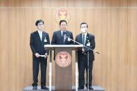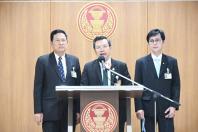 นายอุบลศักดิ์ บัวหลวงงาม รองประธานคณะ กมธ. วิสามัญพิจารณาศึกษาปัญหาอุปสรรคในการจัดบริการสาธารณะ กิจกรรมสาธารณะ และหาแนวทางในการแก้ไขเรื่องการถ่ายโอนภารกิจด้านการพัฒนาแหล่งน้ำให้แก่องค์กรปกครองส่วนท้องถิ่น คนที่หนึ่ง พร้อมด้วย นายจาตุรงค์ เพ็งนรพัฒน์ รองประธานคณะ กมธ. คนที่เจ็ด และนายอำนาจ วิลาวัลย์ โฆษกคณะ กมธ. แถลงข่าวสรุปผลการดำเนินงานของคณะอนุ กมธ.
