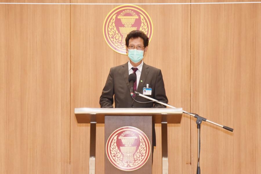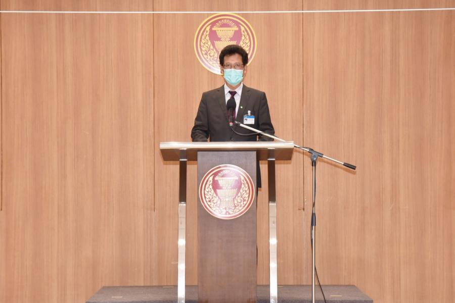นพ.สุกิจ อัถโถปกรณ์ ที่ปรึกษาประธานสภาผู้แทนราษฎร แถลงข่าวถึงสถานการณ์การแพร่ระบาดของเชื้อไวรัสโคโรนา 2019 (โควิด-19) ในรัฐสภา