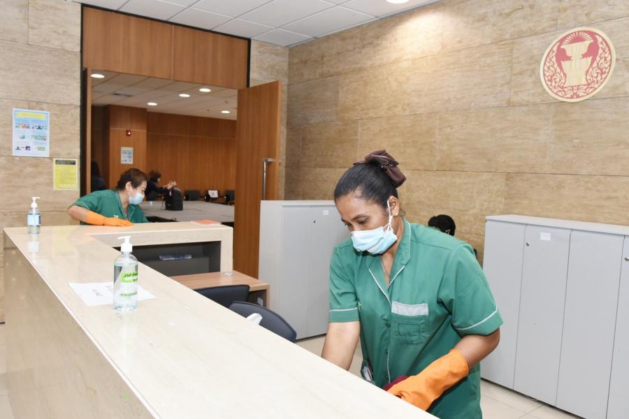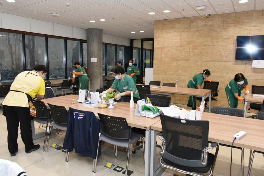 ทั้งนี้ เมื่อเวลา 09.00 น. สำนักงานเลขาธิการสภาผู้แทนราษฎร ได้นำพนักงานทำความสะอาด ดำเนินการทำความสะอาดฆ่าเชื้อโรคภายในห้องทำงานสื่อมวลชนประจำรัฐสภา และห้องแถลงข่าว โดยใช้น้ำยาฆ่าเชื้อผสมแอลกอฮอลล์ทำความสะอาดบริเวณโต๊ะ เก้าอี้ เครื่องคอมพิวเตอร์ ไมโครโฟน โพเดียมแถลงข่าว เคาน์เตอร์ประชาสัมพันธ์ อุปกรณ์ต่าง ๆ และบริเวณโดยรอบ เพื่อควบคุมและป้องกันการแพร่ระบาดของโรคติดเชื้อไวรัสโคโรนา 2019 (โควิด-19) สำหรับการทำความสะอาด Big Cleaning ในครั้งนี้ ได้รับความอนุเคราะห์จาก ว่าที่เรือตรี ยุทธนา สำเภาเงิน ที่ปรึกษาด้านกฎหมาย และนางสาวรุ่งนภา ขันธิโชติ ผู้อำนวยการสำนักบริการทางการแพทย์ประจำรัฐสภา สำนักบริการทางการแพทย์ประจำรัฐสภา ให้การสนับสนุนด้านบุคลากร น้ำยาฆ่าเชื้อโรคอุปกรณ์ในการทำความสะอาด และเจลแอลกอฮอลล์ เพื่อให้รัฐสภาเป็นพื้นที่ปลอดภัยจากเชื้อไวรัสโควิด-19
