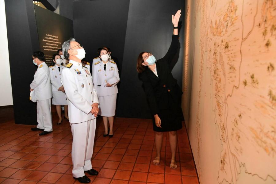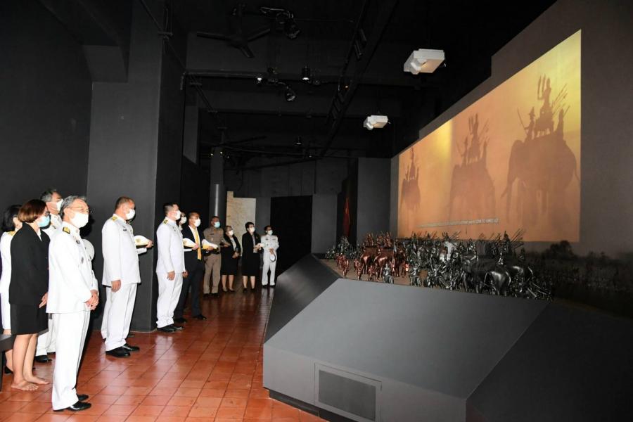โอกาสนี้ นายชวน หลีกภัย และคณะ ได้เยี่ยมชมห้องแสดงประวัติศาสตร์ ซึ่งจัดแสดงนิทรรศการทั้งภาพ แสง สี เสียง และหุ่นจำลองการยกทัพของพม่าและไทยในช่วงสมัยของสมเด็จพระนเรศวรมหาราช