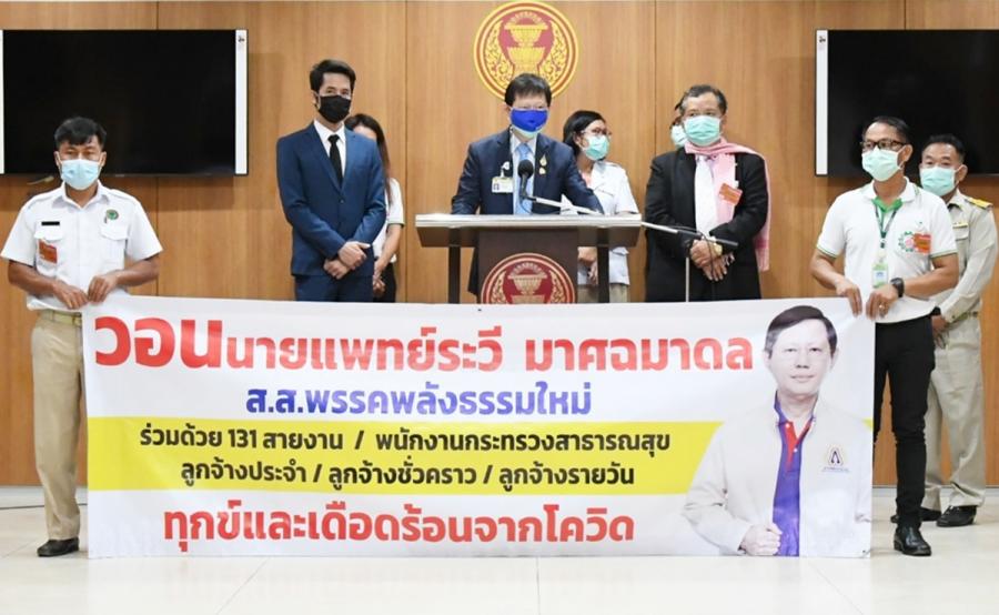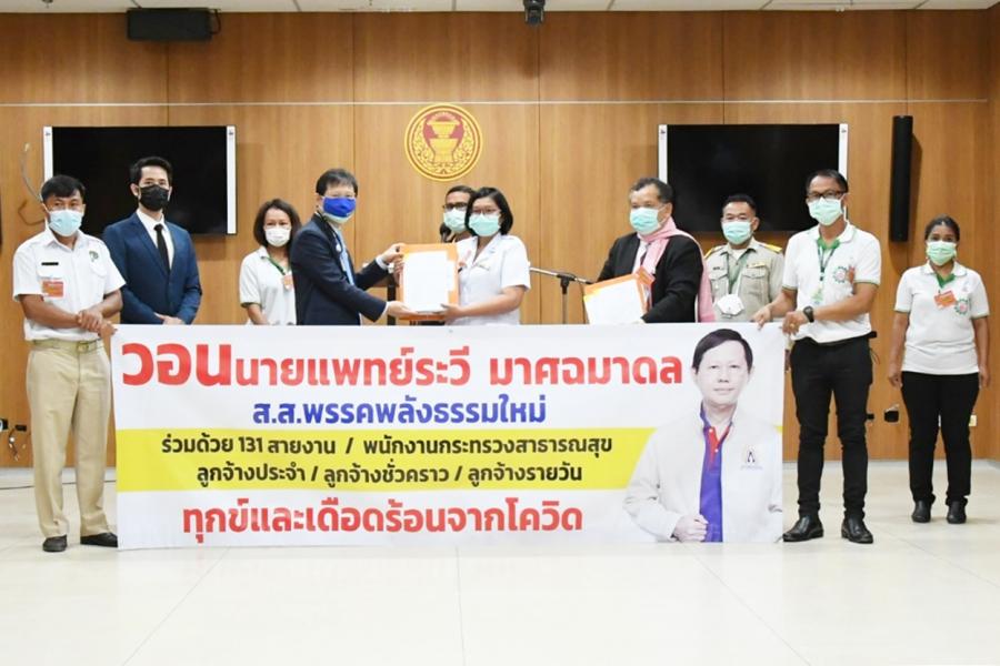 วันอังคารที่ 11 พฤษภาคม 2564 เวลา 10.50 นาฬิกา ณ ห้องแถลงข่าว ชั้น 1 อาคารรัฐสภา นายระวี มาศฉมาดล สมาชิกสภาผู้แทนราษฎรพรรคพลังธรรมใหม่ รับหนังสือจาก น.ส.มาลี ใหม่ซ้อน พนักงานประจำห้องยาและคณะ เรื่อง ขอรับการสนับสนุนบุคลากรในสังกัดกระทรวงสาธารณสุข สายสนับสนุน จำนวน 131 สายงาน และการบรรจุลูกจ้างประจำ พนักงานราชการ พนักงานกระทรวงสาธารณสุข ลูกจ้างชั่วคราววุฒิของสายงานสนับสนุนบริการเข้ารับราชการตามอัตราข้าราชการตั้งใหม่ และให้บรรจุพนักงานกระทรวงสาธารณสุขลูกจ้างชั่วคราว ที่ไม่มีวุฒิการศึกษา ของสายงานสนับสนุน บริการ เป็นลูกจ้างประจำ โดยมีวัตถุประสงค์ ดังนี้