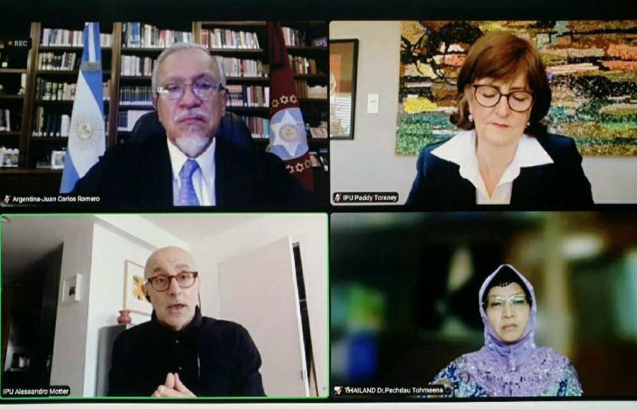 ในการนี้ Mr. Juan Carlos Romero สมาชิกวุฒิสภาจากอาร์เจนตินา ในฐานะประธานคณะ กมธ. ทำหน้าที่ประธานการประชุม โดยได้เริ่มการประชุมด้วยการแนะนำตัวของสมาชิกแต่ละคน พร้อมประเด็นที่สนใจเกี่ยวกับการดำเนินการของสหประชาชาติ รวมถึงเป้าหมายการพัฒนาที่ยั่งยืน จากนั้นฝ่ายเลขานุการคณะฯ ประกอบด้วย Mr. Alessandro Motter และ Ms. Patricia Torsney จากสำนักงานคณะผู้สังเกตการณ์ถาวรของสหภาพรัฐสภาประจำสำนักงานใหญ่สหประชาชาติ ณ นครนิวยอร์ก ได้กล่าวรายงานความคืบหน้า และพัฒนาการของโครงการทางการเมืองระหว่างสหภาพรัฐสภาและสหประชาชาติ ซึ่งจะนำเข้าสู่การพิจารณาของที่ประชุมคณะกรรมการบริหารสหภาพรัฐสภาต่อไป พร้อมทั้งได้กล่าวถึงรายงานกิจกรรมของภาครัฐสภาต่อการดำเนินการของสหประชาชาติ อาทิ การประชุมรับฟังความคิดเห็นภาครัฐสภาของสหประชาชาติ ประจำปี 2564 และชุดกิจกรรมการรับฟังบรรยายสรุปสำหรับสมาชิกรัฐสภาเกี่ยวกับการดำเนินการของสหประชาชาติ ต่อมาฝ่ายเลขานุการได้กล่าวถึงแผนงานและกิจกรรมการประชุมที่จะเกิดขึ้นต่อไปในปี 2564 อาทิ การประชุมระดับสูงของสมัชชาแห่งสหประชาชาติว่าด้วยโรคเอดส์และเอชไอวี (United Nations General Assembly High-level Meeting on HIV/AIDS)ซึ่งจะจัดขึ้นในวันที่ 7 มิ.ย. 64