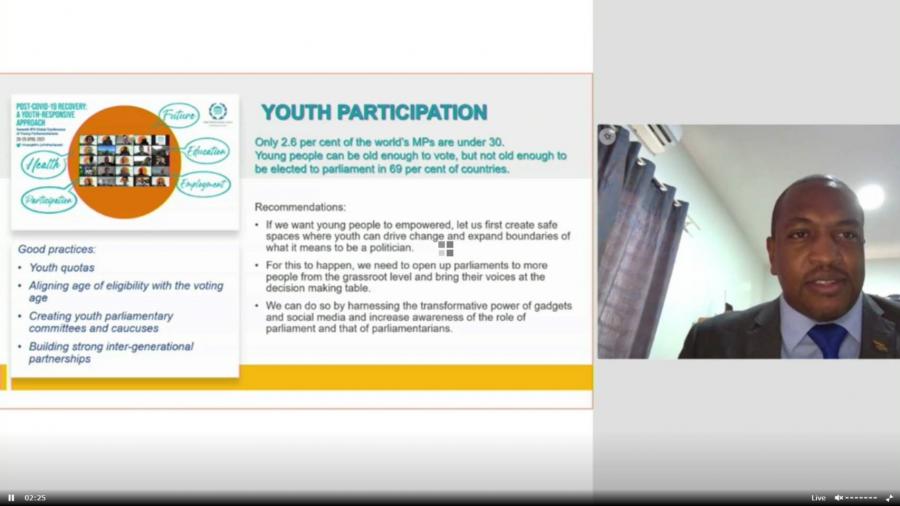 โดยประธานการประชุม กล่าวสรุปผลลัพธ์และข้อเสนอแนะที่ได้จากการประชุมระดับโลกของยุวสมาชิกรัฐสภา ครั้งที่ 7 (The Seventh IPU Global Conference of Young Parliamentarians) ผ่านสื่ออิเล็กทรอนิกส์ เมื่อวันที่ 28 - 29 เม.ย. 64 โดยได้เน้นย้ำบทบาทของสมาชิกรัฐสภาในการให้ความสำคัญต่อการศึกษา การเปิดโอกาสให้เยาวชนมีงานทำที่ดีและเป็นเจ้าของกิจการ การส่งเสริมแนวคิดและการปฏิบัติโดยเริ่มจากตนเองเพื่อขับเคลื่อนการเปลี่ยนแปลงไปสู่การมีส่วนร่วมทางการเมืองที่มากขึ้น ตลอดจนการเข้าถึงระบบสาธารณสุขและความเป็นอยู่ที่ดีของเยาวชน ในบริบทที่โลกกำลังเผชิญกับผลกระทบจากวิกฤตโควิด-19