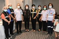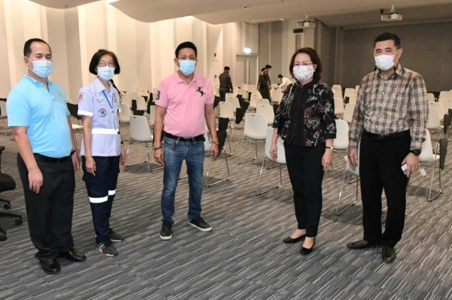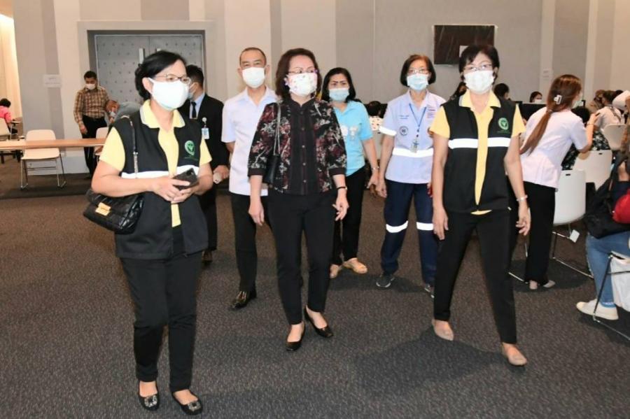 ในการนี้ นายปรีชา ชวลิตธำรง ที่ปรึกษาประธานรัฐสภา นพ.สุกิจ อัถโถปกรณ์ ที่ปรึกษาประธานสภาผู้แทนราษฎร น.ส.ศิริภา อินทวิเชียร ผู้ช่วยเลขานุการประธานสภาผู้แทนราษฎร พร้อมด้วยนางพรพิศ เพชรเจริญ เลขาธิการสภาผู้แทนราษฎร น.ส.โสมอุษา บูรณะเหตุ และนายสาธิต ประเสริฐศักดิ์ รองเลขาธิการสภาผู้แทนราษฎร ว่าที่เรือตรี ยุทธนา สำเภาเงิน ที่ปรึกษาด้านกฎหมาย และผู้บริหารของสำนักงานฯ ได้ตรวจเยี่ยมดูแลความเรียบร้อย และมอบหน้ากากอนามัยของ นายชวน หลีกภัย ประธานรัฐสภา ที่ได้รับการสนับสนุนจากสมาคมฮกเกี้ยนแห่งประเทศไทย หนังสือพิมพ์ซิงเสียนเยอะเป้า บริษัท ออโรร่า ซักเซส จำกัด และบริษัท CBS Shoes พร้อมน้ำดื่มของสำนักงานฯ ให้แก่ผู้เข้ารับการฉีดวัคซีน ซึ่งได้รับความอนุเคราะห์ จากโรงพยาบาลนพรัตนราชธานี กรมการแพทย์ ในการจัดบุคลากรทางการแพทย์มาให้บริการฉีดวัคซีนในวันนี้และวันพรุ่งนี้ (23 พ.ค. 64) วันละ 1,000 โดส รวมทั้งสิ้น 2,000 โดส และสำนักประชาสัมพันธ์ สำนักบริหารงานกลาง สำนักสารสนเทศ สำนักกรรมาธิการ 2 และสำนักบริการทางการแพทย์ประจำรัฐสภา ได้จัดบุคลากรมาอำนวยความสะดวกแก่ผู้เข้ารับการฉีดวัคซีนด้วย