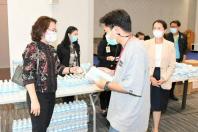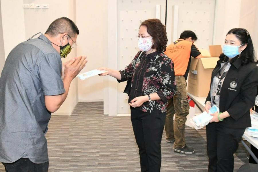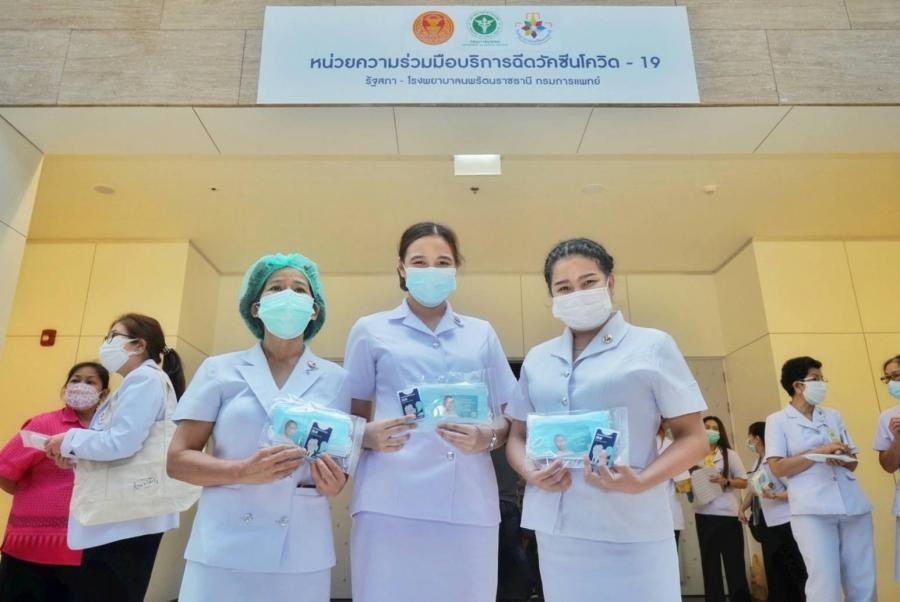 จากนั้น ในเวลา 16.00 น. นางพรพิศ เพชรเจริญ เลขาธิการสภาผู้แทนราษฎร และ น.ส.ศิริภา อินทวิเชียร ผู้ช่วยเลขานุการประธานสภาผู้แทนราษฎร มอบหน้ากากอนามัย สเปรย์แอลกอฮอล์ และกระเป๋าที่ระลึกจากนายชวน หลีกภัย ประธานรัฐสภาและประธานสภาผู้แทนราษฎร ให้แก่บุคลากรทางการแพทย์ของโรงพยาบาลนพรัตนราชธานี กรมการแพทย์ เพื่อแสดงความขอบคุณที่ได้มาให้บริการฉีดวัคซีนป้องกันโรคติดเชื้อไวรัสโคโรนา 2019 (โควิด-19) แก่ สมาชิกสภาผู้แทนราษฎร บุคลากรของสำนักงานเลขาธิการสภาผู้แทนราษฎร บุคคลในวงงานรัฐสภา และสื่อมวลชนประจำรัฐสภา