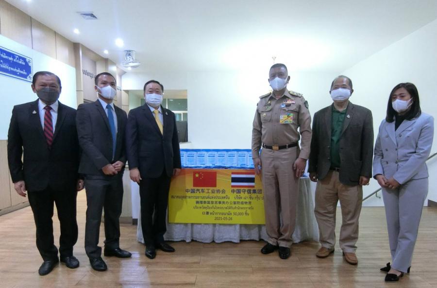 วันพุธที่ 26 พฤษภาคม 2564 เวลา 14.00 นาฬิกา ณ ศูนย์อำนวยการใหญ่จิตอาสาพระราชทาน เขตดุสิต กรุงเทพฯ นายสุชาติ ตันเจริญ รองประธานสภาผู้แทนราษฎร คนที่หนึ่ง ในฐานะอุปนายกสมาคมวัฒนธรรมและเศรษฐกิจไทย - จีน เป็นผู้แทนสมาคมอุตสาหกรรมยานยนต์แห่งประเทศจีน นำหน้ากากอนามัยทางการแพทย์ จำนวน 50,000 ชิ้น ไปมอบให้กับ พล.ร.อ.ปวิตร รุจิเทศ ผู้อำนวยการศูนย์อำนวยการใหญ่จิตอาสาพระราชทาน
