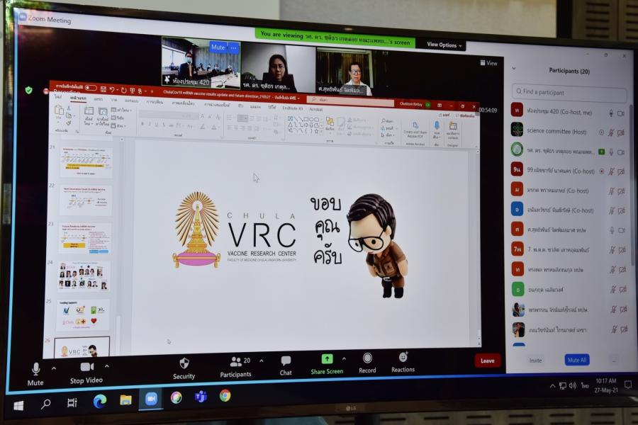 วันพฤหัสบดีที่ 27 พฤษภาคม 2564 เวลา 09.30 นาฬิกา ณ ห้องประชุม 420 ชั้น 4 อาคารรัฐสภา นายอัครวัฒน์ อัศวเหม ประธานคณะ กมธ. การวิทยาศาสตร์ เทคโนโลยี วิจัยและนวัตกรรม เป็นประธานการประชุมคณะ กมธ. ครั้งที่ 50 ผ่านระบบอิเล็กทรอนิกส์ เพื่อพิจารณาเรื่อง การพัฒนางานวิจัยผลิตวัคซีนป้องกันโรคติดเชื้อไวรัสโคโรนา 2019 (COVID-19) ของประเทศไทย