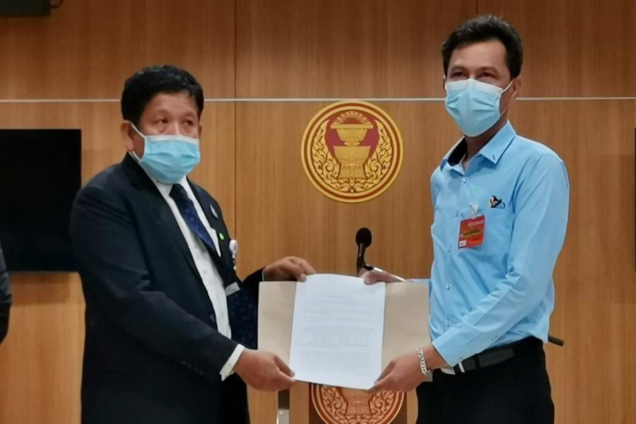 นายสุทา ประทีป ณ ถลาง รองประธานคณะ กมธ. การป้องกันและปราบปรามการทุจริตประพฤติมิชอบ คนที่หนึ่ง รับยื่นหนังสือจากนายอาทิตย์ เสมาพิทักษ์ ผู้สมัครนายกเทศมนตรี เทศบาลตำบลมวกเหล็ก อำเภอมวกเหล็ก จังหวัดสระบุรี เพื่อขอความเป็นธรรมในการเลือกตั้งท้องถิ่นเทศบาลมวกเหล็ก