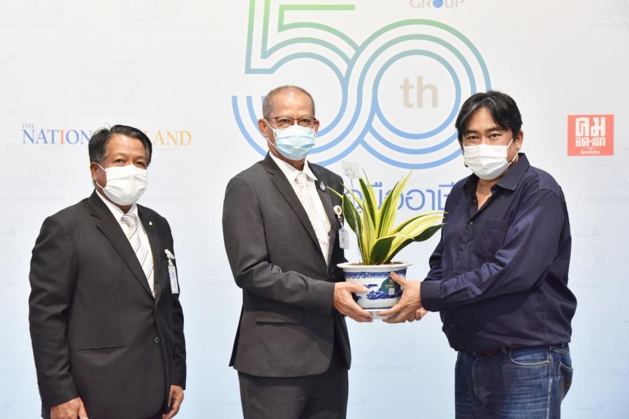 นายสมบูรณ์ อุทัยเวียนกุล เลขานุการประธานสภาผู้แทนราษฎรและนายวสันต์ นุ้ยภิรมย์ คณะทำงานทางการเมืองของประธานสภาผู้แทนราษฎรมอบต้นลิ้นมังกร เพื่อร่วมแสดงความยินดี เนื่องในโอกาสครบรอบ 50 ปีบริษัท เนชั่น มัลติมีเดีย กรุ๊ป จำกัด (มหาชน) โดยมี นายปกรณ์ พึ่งเนตรบรรณาธิการบริหารเนชั่นทีวีให้การต้อนรับ