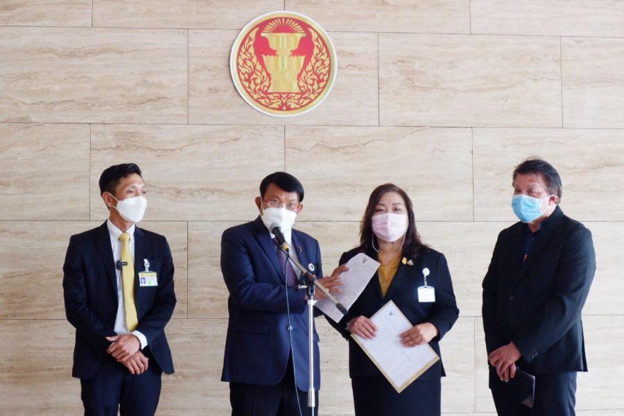 นายวรสิทธิ์ กัลป์ตินันท์ ประธานคณะ กมธ. การอุตสาหกรรม และนายประทวน สุทธิอำนวยเดช รองประธานคณะ กมธ. คนที่สอง รับยื่นหนังสือร้องเรียนโรงงานอุตสาหกรรมในเขตจังหวัดสมุทรสาคร ที่ลักลอบปล่อยน้ำเสียและปล่อยมลพิษทางอากาศและทางเสียง จากน.ส.จอมขวัญ กลับบ้านเกาะ ส.ส.พรรคพลังประชารัฐ จ.สมุทรสาคร และ นายลือชา โพธิ์อบ นายกเทศมนตรีตำบลบางปลา