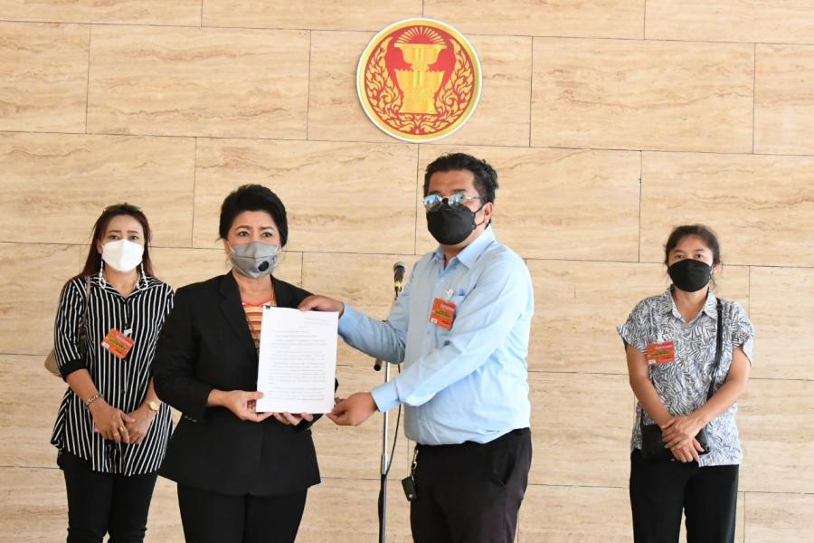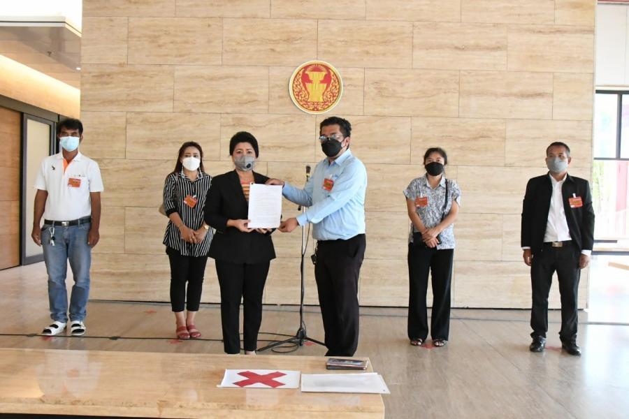 นางสาวรังสิมา รอดรัศมี ประธานคณะ กมธ. การสวัสดิการสังคม รับยื่นหนังสือจากนายชัยยุทธ นวลสุวรรณ ตัวแทนประชาชนผู้พักอาศัยในโครงการเคหะชุมชนนวมินทร์ เรื่อง ขอร้องเรียนความเดือดร้อนของผู้เช่าอาศัยในโครงการเคหะชุมชนนวมินทร์