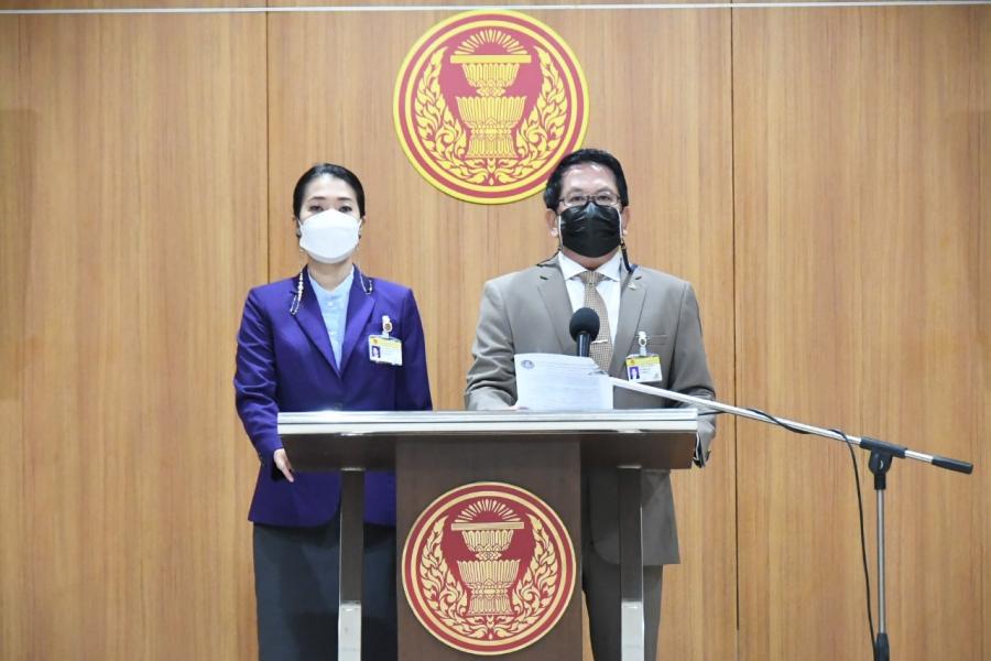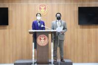 น.ส.ธีรรัตน์ สำเร็จวาณิชย์ และนายจิรายุ ห่วงทรัพย์ และ โฆษกคณะ กมธ.วิสามัญพิจารณาร่าง พ.ร.บ.งบประมาณรายจ่ายประจำปีงบประมาณ พ.ศ. 2565 แถลงข่าว