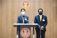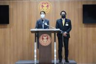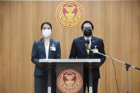 นายจิรายุ ห่วงทรัพย์ และ น.ส.ธีรรัตน์ สำเร็จวาณิชย์ โฆษกคณะ กมธ.วิสามัญพิจารณาร่าง พ.ร.บ.งบประมาณรายจ่ายประจำปีงบประมาณ พ.ศ. 2565 แถลงข่าว