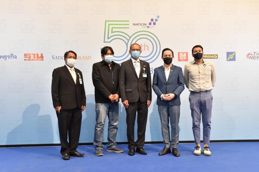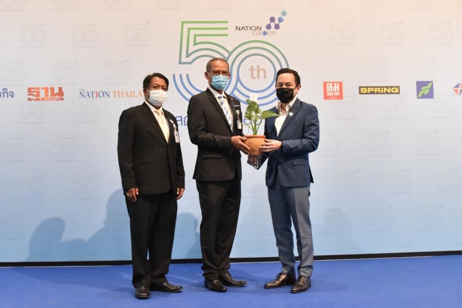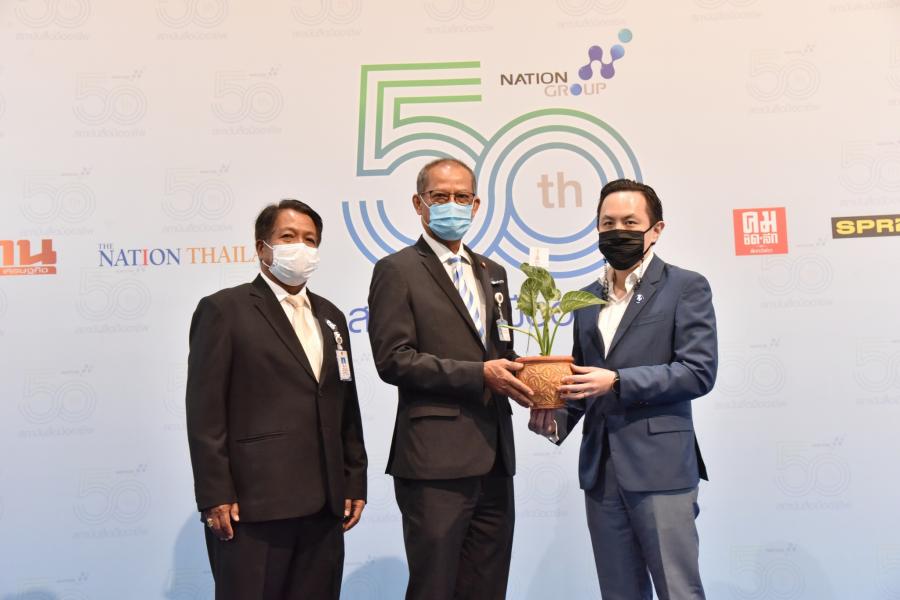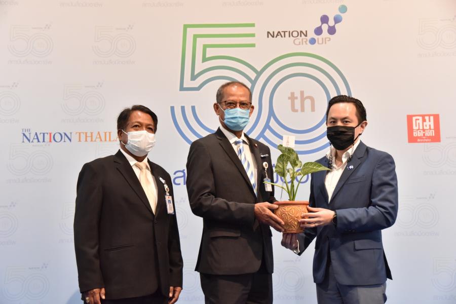 นายสมบูรณ์ อุทัยเวียนกุล เลขานุการประธานสภาผู้แทนราษฎร มอบต้นฟิโล เบอกิ้น เพื่อร่วมแสดงความยินดี เนื่องในโอกาสครบรอบ 50 ปี บริษัท เนชั่น มัลติมีเดีย กรุ๊ป จำกัด (มหาชน)