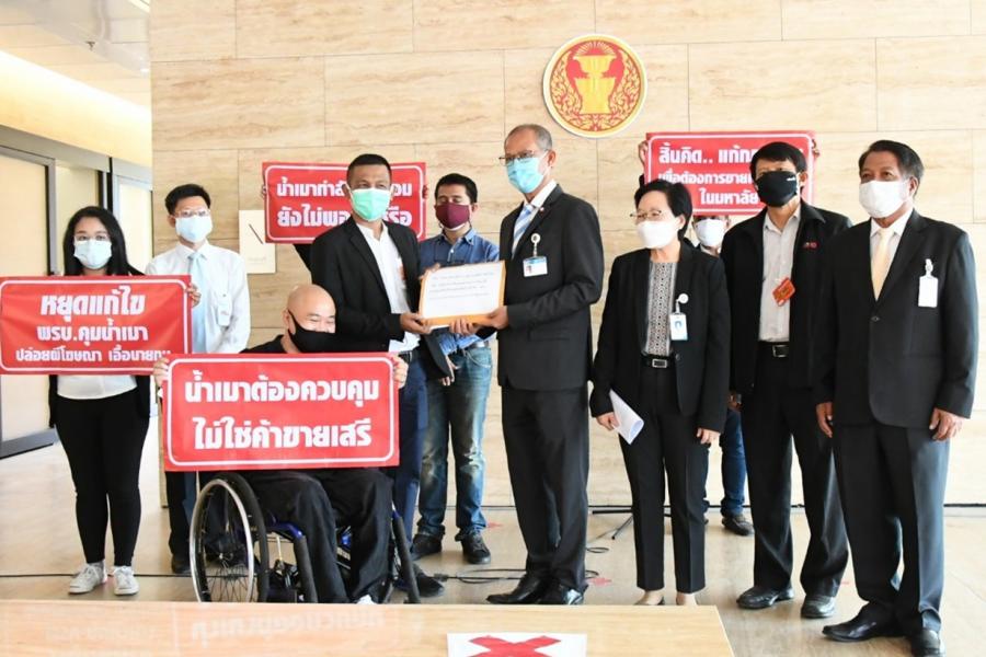 วันพฤหัสบดีที่ 1 กรกฎาคม 2564 เวลา 10.00 นาฬิกา ณ จุดยื่นหนังสือ (โซนกลาง) ชั้น 1 อาคารรัฐสภา  นายสมบูรณ์ อุทัยเวียนกุล เลขานุการประธานสภาผู้แทนราษฎร น.ส.ผ่องศรี ธาราภูมิ และนายวสันต์ นุ้ยภิรมย์ คณะทำงานทางการเมืองของประธานสภาผู้แทนราษฎร รับยื่นหนังสือจาก นายธีรภัทร์ คหะวงศ์ ผู้ประสานงานเครือข่ายสร้างเสริมสุขภาพเยาวชน นายเจษฎา แย้มสบาย ประธานเครือข่ายเหยื่อเมาแล้วขับกรุงเทพ  นายคำรณ  ชูเดชา ผู้ประสานงานเครือข่ายเฝ้าระวังธุรกิจสุรา (แอลกอฮอล์วอช)  นายธีระ วัชรปราณี ผู้จัดการเครือข่ายองค์กรงดเหล้า  นายชูวิทย์  จันทรส ผู้ประสานงานเครือข่ายรณรงค์ป้องกันภัยแอลกอฮอล์ และภาคีเครือข่าย เพื่อสะท้อนความกังวลในการเสนอแก้ไข พ.ร.บ.ควบคุมเครื่องดื่มแอลกอฮอล์ พ.ศ. 2551 ของฝ่ายธุรกิจ ซึ่งมีเนื้อหาทำให้มาตรการควบคุมเครื่องดื่มแอลกอฮอล์อ่อนแอลง เอื้อประโยชน์ในทางธุรกิจ หวั่นผลกระทบทางสังคมเพิ่ม อาทิ ยกเลิกการควบคุมโฆษณา ยกเลิกการห้ามลดแลกแจกแถม ให้ขายเหล้าเบียร์ในมหาวิทยาลัยได้ เป็นต้น พร้อมเสนอร่าง พ.ร.บ.ควบคุมเครื่องดื่มแอลกอฮอล์ฉบับภาคประชาชน พร้อมรายชื่อผู้ริเริ่มเสนอร่างกฎหมาย จำนวน 28 รายชื่อ สำหรับร่าง พ.ร.บ.ดังกล่าวมีเจตนารมณ์เพื่อป้องกันและลดผลกระทบจากเครื่องดื่มแอลกอฮอล์  ลดปัญหาสังคม ปกป้องประชาชน และป้องกันนักดื่มหน้าใหม่