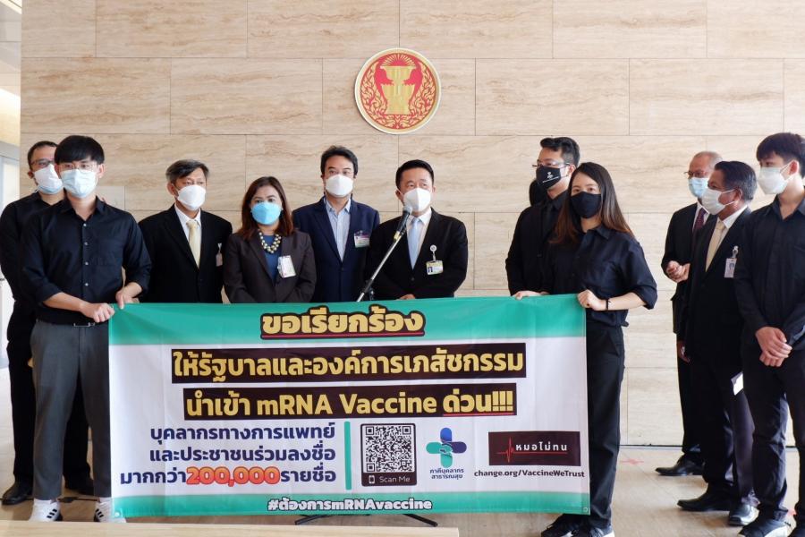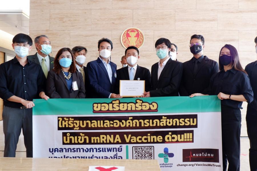 1. เร่งรัดการนำเข้าวัคซีนชนิด mRNA และพิจารณาเลือกใช้วัคซีนชนิดดังกล่าวเป็นวัคซีนหลักในการควบคุมสถานการณ์การแพร่ระบาดในประเทศไทย มาบริการฉีดให้แก่ประชาชนโดยไม่เสียค่าใช้จ่าย เนื่องจากมีหลักฐานทางวิทยาศาสตร์การแพทย์ยืนยันว่า วัคซีนชนิด mRNA เป็นวัคซีนที่มีประสิทธิภาพสูง สามารถป้องกันการติดเชื้อได้ครอบคลุมหลายสายพันธุ์ รวมทั้งสามารถลดอัตราการป่วยหนักและลดการเสียชีวิตได้