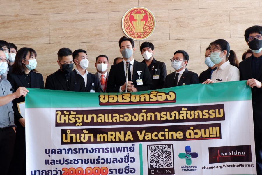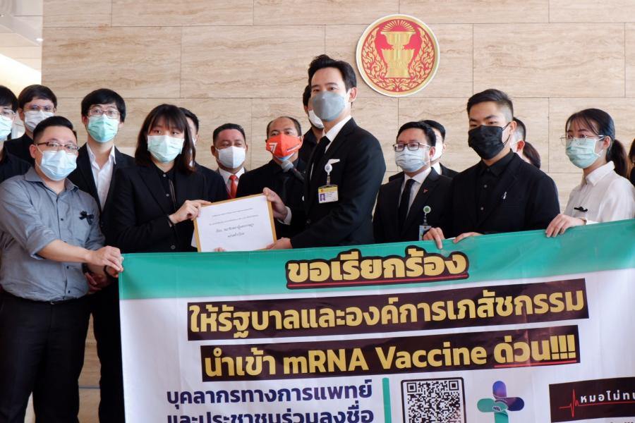 1. เร่งรัดการนำเข้าวัคซีนชนิด mRNA และพิจารณาเลือกใช้วัคซีนชนิดดังกล่าวเป็นวัคซีนหลักในการควบคุมสถานการณ์การแพร่ระบาดในประเทศไทย มาบริการฉีดให้แก่ประชาชนโดยไม่เสียค่าใช้จ่าย เนื่องจากมีหลักฐานทางวิทยาศาสตร์การแพทย์ยืนยันว่า วัคซีนชนิด mRNA เป็นวัคซีนที่มีประสิทธิภาพสูง สามารถป้องกันการติดเชื้อได้ครอบคลุมหลายสายพันธุ์ รวมทั้งสามารถลดอัตราการป่วยหนักและลดการเสียชีวิตได้