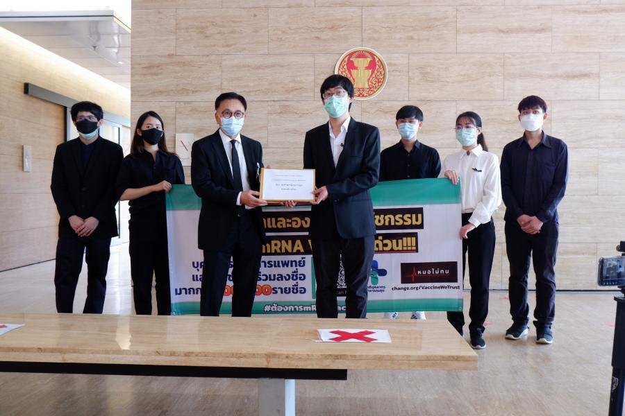 นายเรวัต วิศรุตเวช ส.ส. พรรคเสรีรวมไทย รับยื่นหนังสือจาก นพ.สันติ กิจวัฒนาไพบูลย์ ตัวแทนภาคีบุคลากรสาธารณสุข และกลุ่มหมอไม่ทน เพื่อยื่นรายชื่อจำนวนกว่า 2 แสนรายชื่อ จากบุคลากรทางการแพทย์และภาคประชาชน เพื่อเรียกร้องให้รัฐบาลดำเนินการแก้ไขปัญหาการแพร่ระบาดของโรคติดเชื้อไวรัสโคโรนา 2019 (โควิด-19)
