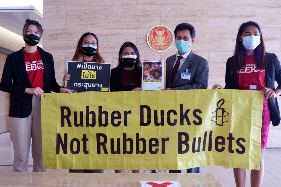 วันพฤหัสบดีที่ 8 กรกฎาคม 2564 เวลา 10.15 นาฬิกา ณ จุดรับยื่นหนังสือ ชั้น 1 (โซนกลาง) อาคารรัฐสภา นพ.สุกิจ อัถโถปกรณ์ ที่ปรึกษาประธานสภาผู้แทนราษฎร รับยื่นหนังสือจาก นางปิยนุช โคตรสาร ผู้อำนวยการแอมเนสตี้ อินเตอร์เนชั่นแนล ประเทศไทย และคณะ เรื่อง รายงานวิจัยของแอมเนสตี้ อินเตอร์เนชั่นแนล เกี่ยวกับการควบคุมฝูงชนในระหว่างการชุมนุมสาธารณะในประเทศไทย โดยรายงานฉบับนี้ให้ความสำคัญต่อการปฏิบัติของหน่วยงานบังคับใช้กฎหมายเพื่อรับมือกับการชุมนุมสาธารณะที่มีเยาวชนเป็นแกนนำ ตั้งแต่เดือน ต.ค. 63 - ก.พ. 64 พบว่ามีการละเมิดสิทธิและเสรีภาพในการชุมนุมหลายครั้ง และระบุมาตรการต่าง ๆ ที่ภาครัฐนำมาใช้ต่อผู้ชุมนุมในลักษณะเป็นการใช้กำลังที่ไม่ชอบด้วยกฎหมายตามกฎหมายสิทธิมนุษยชนระหว่างประเทศ และมาตรฐานการควบคุมฝูงชนระหว่างประเทศ อีกทั้งยังพบหลักฐานเพิ่มเติมว่าเจ้าหน้าที่ผู้บังคับใช้กฎหมายไม่ได้ป้องกันความรุนแรงจากบุคคลที่สามที่กระทำต่อผู้ชุมนุม ในการนี้ จึงขอเสนอข้อเสนอแนะต่อรัฐบาล ดังนี้