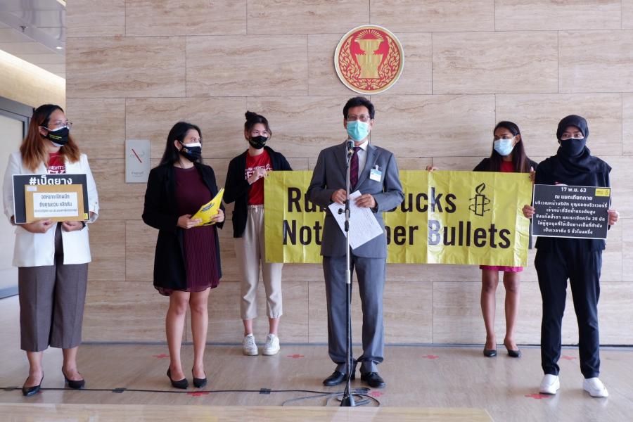 5. ยกเลิกข้อหาทั้งหมดที่มีต่อนักปกป้องสิทธิมนุษยชนและนักกิจกรรม ที่ตกเป็นเป้าหมายเนื่องจากการใช้สิทธิในการชุมนุมโดยสงบ และแก้ไขหรือยกเลิก พ.ร.บ. การชุมนุมสาธารณะ พ.ศ. 2558 พ.ร.ก. การบริหารราชการในสถานการณ์ฉุกเฉิน พ.ศ. 2548 ให้สอดคล้องกับกฎหมายและมาตรฐานสิทธิมนุษยชนระหว่างประเทศ รวมถึงเพื่อให้เกิดการชุมนุมโดยไม่ต้องแจ้งล่วงหน้าได้ และยกเลิกข้อจำกัดที่เกินกว่าเหตุในการปิดกั้นการชุมนุมโดยสงบ