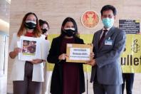 นพ.สุกิจ อัถโถปกรณ์ ที่ปรึกษาประธานสภาผู้แทนราษฎร รับยื่นหนังสือจาก นางปิยนุช โคตรสาร ผู้อำนวยการแอมเนสตี้ อินเตอร์เนชั่นแนล ประเทศไทย และคณะ