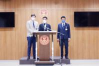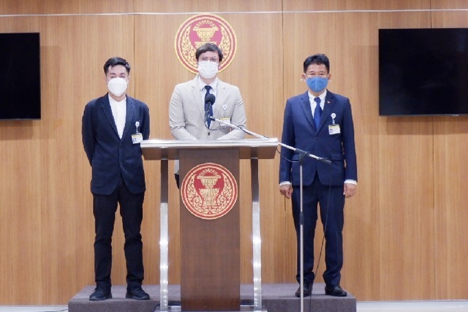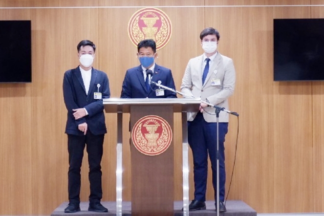 รองประธานคณะ กมธ.พิจารณาร่างรัฐธรรมนูญแห่งราชอาณาจักรไทย แก้ไขเพิ่มเติม (ฉบับที่ ..) พ.ศ. .... (แก้ไขเพิ่มเติมมาตรา 83 และมาตรา 91) คนที่หก นายรังสิมันต์ โรม กมธ.และที่ปรึกษาคณะ กมธ. และนายปดิพัทธ์ สันติภาดา โฆษกคณะ กมธ. แถลงข่าว