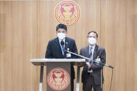ศ.โกวิทย์ พวงงาม รองประธานคณะ กมธ. การกระจายอำนาจ การปกครองส่วนท้องถิ่น และการบริหารราชการรูปแบบพิเศษ คนที่หนึ่ง พร้อมด้วย นายสฤษฏ์พงษ์ เกี่ยวข้อง กมธ. แถลงข่าว กรณีข้อเสนอผันเงินกู้ 500,000 ล้านบาท ให้จังหวัดและท้องถิ่น เพื่อช่วยเหลือเยียวยาและแก้ไขปัญหาให้แก่ประชาชนที่ได้รับผลกระทบจากการแพร่ระบาดของโรคติดเชื้อไวรัสโคโรนา 2019 (โควิด-19)