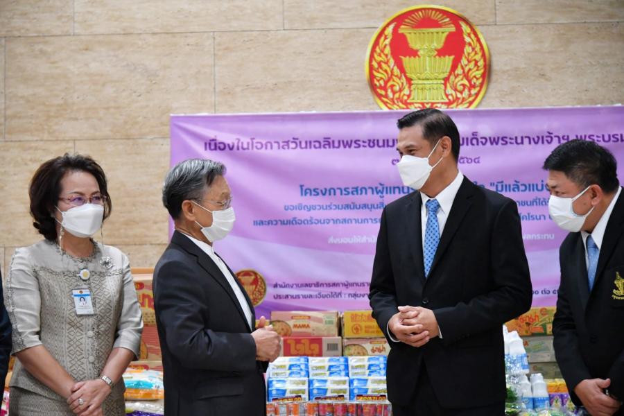 ประธานรัฐสภาและประธานสภาผู้แทนราษฎร มอบสิ่งของเครื่องอุปโภคบริโภค จากโครงการสภาผู้แทนราษฎรรวมใจ "มีแล้วแบ่งปัน