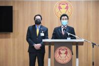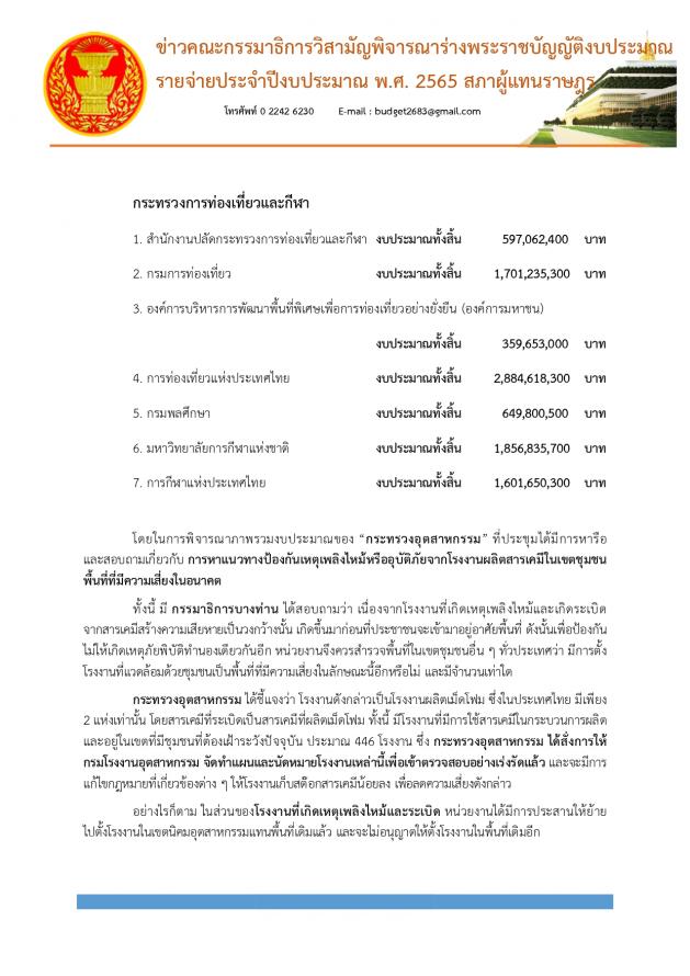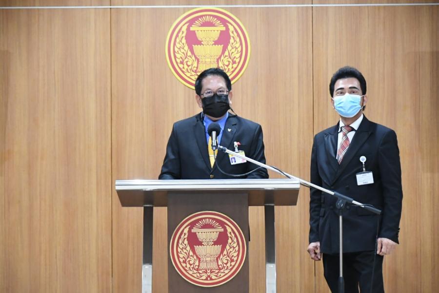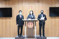 นายศรัณย์วุฒิ ศรัณย์เกตุ ที่ปรึกษาคณะ กมธ.วิสามัญพิจารณาร่าง พ.ร.บ.งบประมาณรายจ่ายประจำปีงบประมาณ พ.ศ. 2565 พร้อมด้วยนายจิรายุ ห่วงทรัพย์ และ น.ส.ธีรรัตน์ สำเร็จวาณิชย์ โฆษกคณะ กมธ. แถลงข่าวผลการประชุมและความคืบหน้าในการพิจารณาร่าง พ.ร.บ.งบประมาณรายจ่ายประจำปีงบประมาณ พ.ศ. 2565