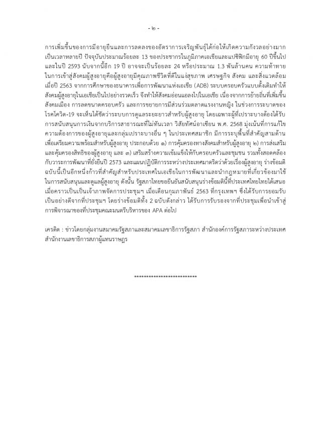 คณะผู้แทนรัฐสภาไทย ร่วมการประชุมคณะ กมธ.ว่าด้วยสังคมและวัฒนธรรมของสมัชชารัฐสภาเอเชียในรูปแบบการประชุมผ่านสื่ออิเล็กทรอนิกส์