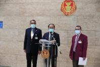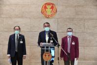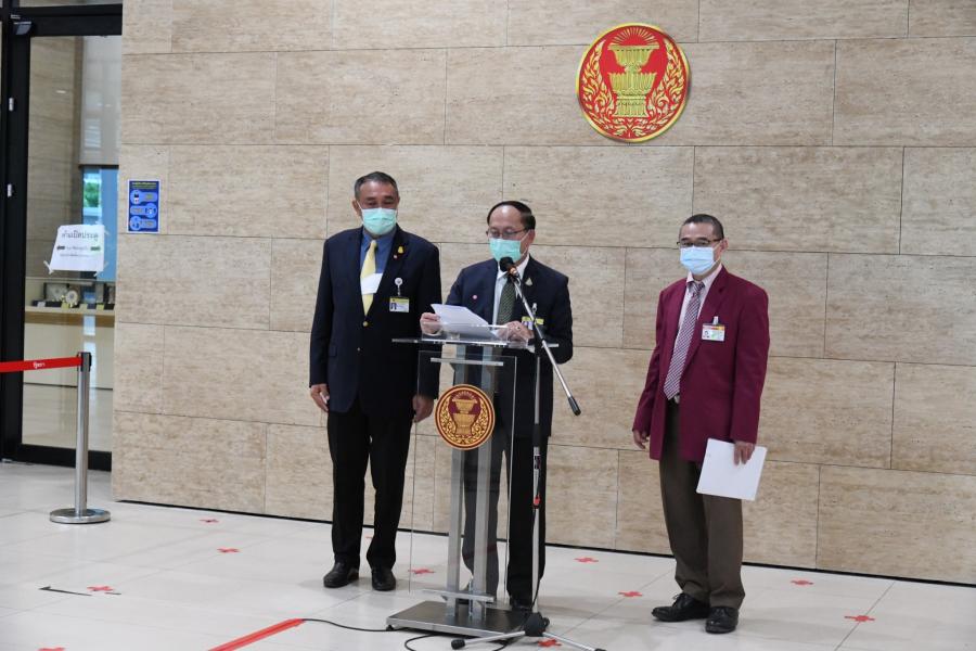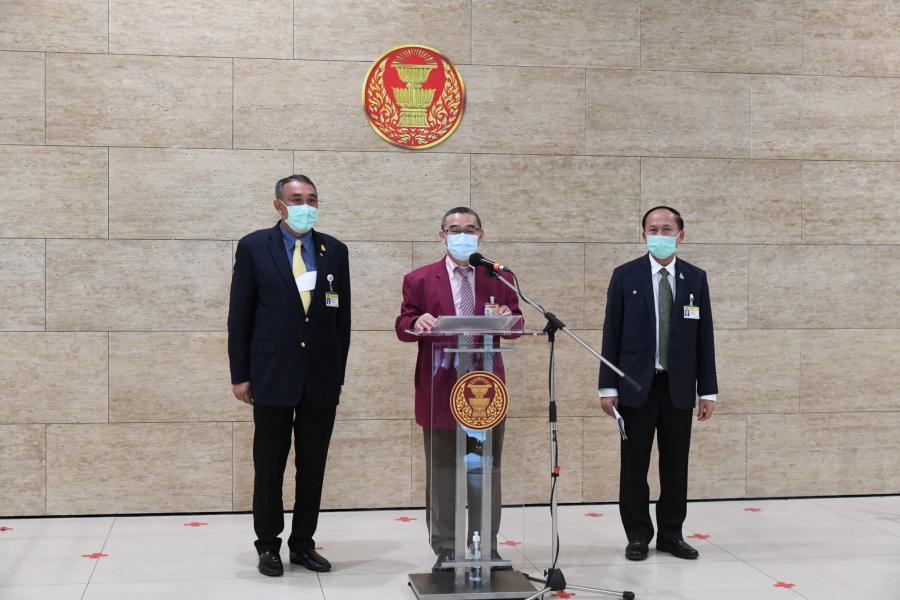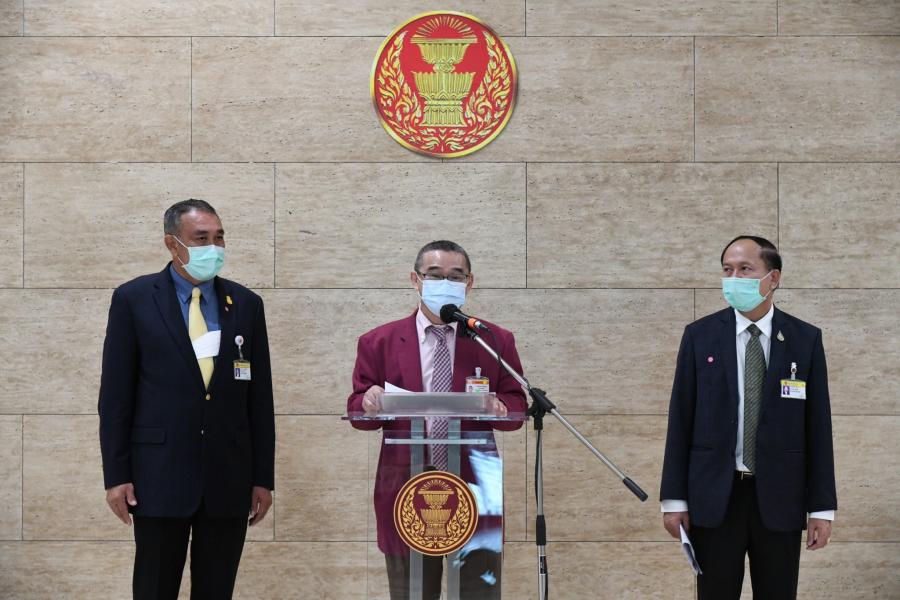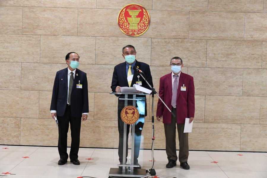 นายสาคร เกี่ยวข้อง นายสุชาติ อุสาหะ และนายเรืองไกร เรืองกิจวัฒนะ โฆษกคณะ กมธ. พิจารณาร่าง พ.ร.บ. งบประมาณรายจ่าย ประจำปีงบประมาณ พ.ศ.2565 ร่วมกันแถลงข่าว ผลการประชุม คณะ กมธ.