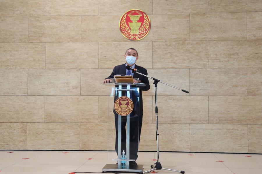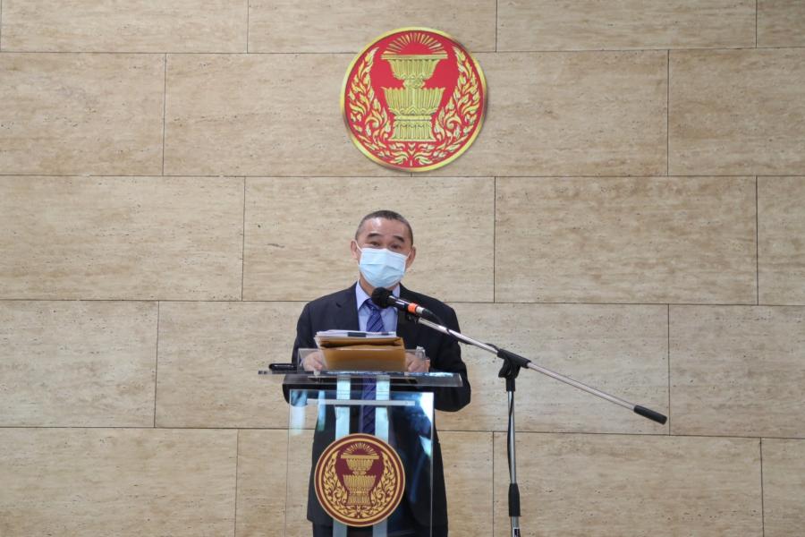 นายเรืองไกร ลีกิจวัฒนะ โฆษกคณะ กมธ. วิสามัญพิจารณาร่างพระราชบัญญัติงบประมาณรายจ่ายประจำปีงบประมาณ พ.ศ. 2565 แถลงข่าวผลการประชุมของคณะ กมธ.