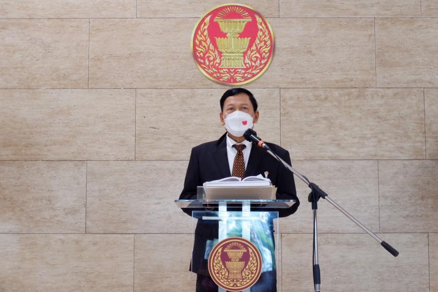 นายอุบลศักดิ์ บัวหลวงงาม รองประธานคณะ กมธ. วิสามัญพิจารณาร่าง พ.ร.บ. งบประมาณรายจ่ายประจำปีงบประมาณ พ.ศ. 2565 คนที่สิบเก้า แถลงข่าวเกี่ยวกับกรณีความขัดแย้งทางความคิดของคณะ กมธ.วิสามัญพิจารณาร่าง พ.ร.บ. งบประมาณฯ
