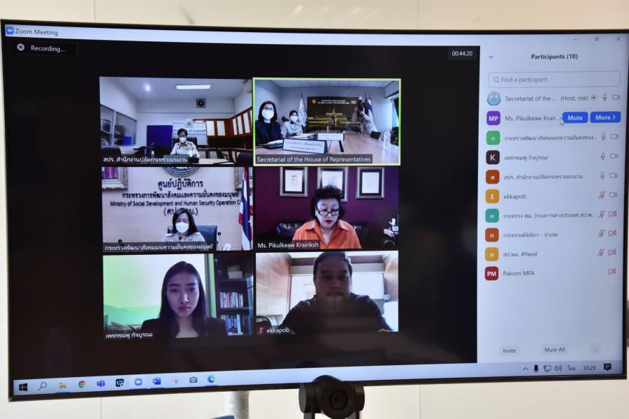 ประชุมคณะผู้แทนรัฐสภาไทยในคณะกรรมาธิการด้านกิจการสตรี (WAIPA) ในการประชุมใหญ่สมัชชารัฐสภาอาเซียน ครั้งที่ 42 ครั้งที่ 1/2564 ผ่านสื่ออิเล็กทรอนิกส์