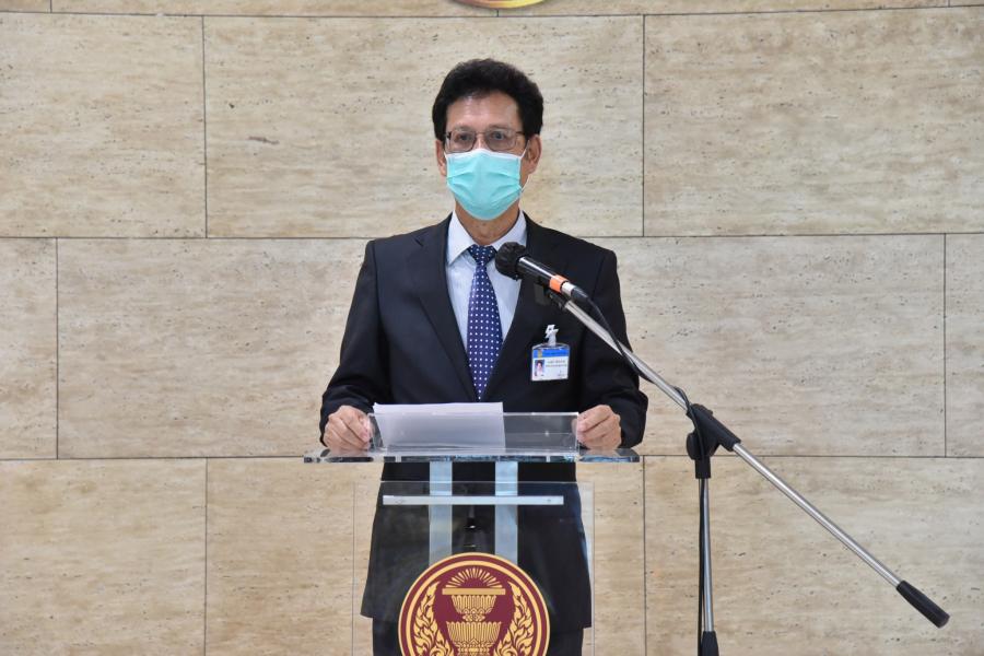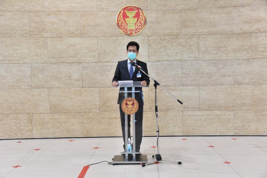 นพ.สุกิจ อัถโถปกรณ์ ที่ปรึกษาประธานสภาผู้แทนราษฎร แถลงข่าวเกี่ยวกับการประชุมสภาผู้แทนราษฎร เพื่อพิจารณาร่างพระราชบัญญัติงบประมาณรายจ่ายประจำปีงบประมาณ พ.ศ. 2565