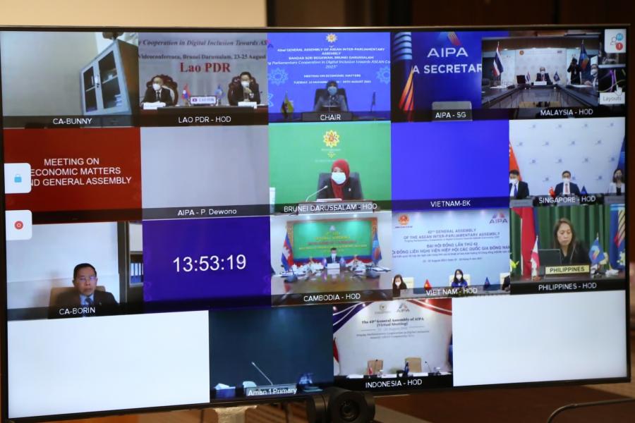 นายมนูญ สิวาภิรมย์รัตน์ สมาชิกสภาผู้แทนราษฎร ในฐานะหัวหน้าคณะผู้แทนรัฐสภาไทยในการประชุมคณะกรรมาธิการด้านเศรษฐกิจ เข้าร่วมประชุมคณะกรรมาธิการด้านเศรษฐกิจ ในการประชุมใหญ่สมัชชารัฐสภาอาเซียน ครั้งที่ 42 ผ่านสื่ออิเล็กทรอนิกส์