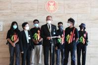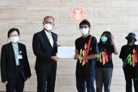 นายสมบูรณ์ อุทัยเวียนกุล เลขานุการประธานสภาผู้แทนราษฎร และ น.ส.ผ่องศรี ธาราภูมิ คณะทำงานทางการเมืองของประธานสภาผู้แทนราษฎร รับยื่นหนังสือจากนายนวพล ต้นงาม ตัวแทนกลุ่มทะลุฟ้า เพื่อขอให้รัฐสภาทบทวนการพิจารณาร่างรัฐธรรมนูญที่ประชาชนเป็นผู้ร่างขึ้น