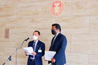 ศ.โกวิทย์ พวงงาม ส.ส.พรรคพลังท้องถิ่นไท รับยื่นหนังสือจาก นายสิรวิทย์ ฉ่ำตุ๋ย อดีตผู้สมัคร ส.ส.พรรคพลังท้องถิ่นไท เกี่ยวกับแนวปฏิบัติการเก็บเงินค่าบำรุงการศึกษา ค่าธรรมเนียมการศึกษาฯ ของโรงเรียนเซนหลุยส์ ฉะเชิงเทรา