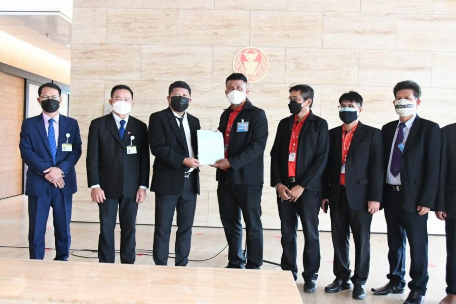 ประธานคณะ กมธ. การแรงงาน และคณะ รับยื่นหนังสือจาก นายเด่นชัย สุภาสัย ตัวแทนพนักงานบริษัท ไปรษณีย์ไทย จำกัด และคณะ เพื่อขอความเป็นธรรมกรณีการหักเงินเดือนค่าจ้างให้สหกรณ์ไม่ชอบด้วยกฎหมาย