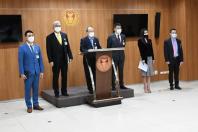 นายมนูญ สิวาภิรมย์รัตน์ ประธานคณะ กมธ. ความมั่นคงแห่งรัฐ กิจการชายแดนไทย ยุทธศาสตร์ชาติและการปฏิรูปประเทศ และคณะ แถลงข่าวเกี่ยวกับผลการประชุมคณะ กมธ.