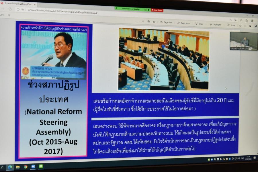 วันศุกร์ที่ 17 กันยายน 2564 เวลา 13.00 นาฬิกา ณ ห้องประชุม CB 407 ชั้น 4 อาคารรัฐสภา นายนิกร จำนง รองประธานคณะ กมธ.การคมนาคม ในฐานะประธานเครือข่ายสมาชิกรัฐสภาด้านความปลอดภัยทางถนนภูมิภาคเอเชีย แปซิฟิก เป็นประธานกล่าวเปิดการประชุมคณะกมธ. คมนาคม เรื่อง ก้าวสู่ทศวรรษแห่งความปลอดภัยทางถนน ค.ศ. 2021 2030 : สานพลังลดเจ็บตาย เยาวชนไทยมีส่วนร่วม (The House of Representatives Standing Committee on Transport Meeting for Towards the Decade of Action for Road Safety 2021 2030 : Sharing Responsibilities, Engaging Young People) และให้เกียรติบรรยายในหัวข้อ "ความก้าวหน้าด้านนิติบัญญัติในช่วงทศวรรษที่ผ่านมา" ผ่านสื่ออิเล็กทรอนิกส์ ดำเนินรายการโดย น.ส.กนกวรรณ กนกวนาวงศ์ นักจัดรายการวิทยุและสื่อมวลชนอิสระ