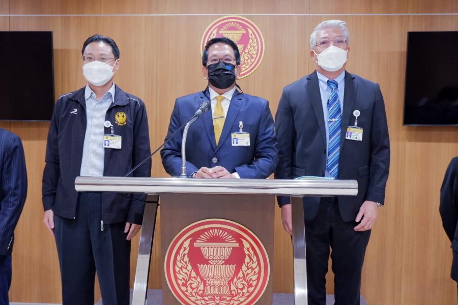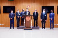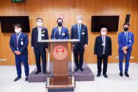 นายจิรายุ ห่วงทรัพย์ ประธานคณะ กมธ. กิจการศาล องค์กรอิสระ องค์กรอัยการ รัฐวิสาหกิจ องค์การมหาชน และกองทุน และคณะ แถลงข่าวผลการประชุมคณะ กมธ.