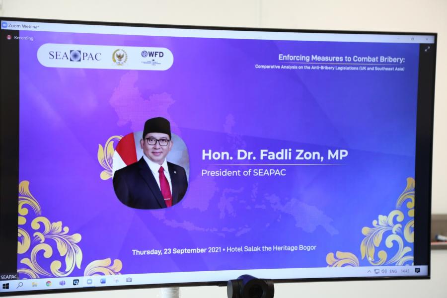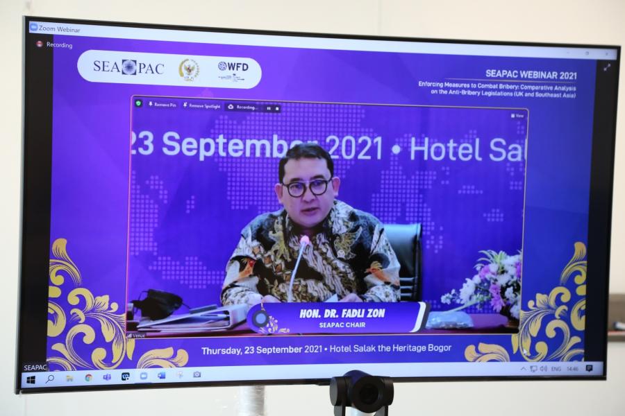 วันพฤหัสบดีที่ 23 กันยายน 2564  เวลา 14.30 – 17.15 นาฬิกา ณ ห้องประชุมสำนักองค์การรัฐสภาระหว่างประเทศ ชั้น 3 อาคารรัฐสภา คณะผู้แทนรัฐสภาไทย ประกอบด้วย นายธีรัจชัย พันธุมาศ สมาชิกสภาผู้แทนราษฎร นายเจตน์ ศิรธรานนท์ สมาชิกวุฒิสภา และ น.ส.ดาวน้อย  สุทธินิภาพันธ์ สมาชิกวุฒิสภา เข้าร่วมการสัมมนาผ่านสื่ออิเล็กทรอนิกส์ของกลุ่มสมาชิกรัฐสภาภูมิภาคเอเชียตะวันออกเฉียงใต้เพื่อการต่อต้านการทุจริต (Southeast Asia Parliamentarians against Corruption) (SEAPAC Webinar) ในหัวข้อ “การบังคับใช้มาตรการเพื่อขจัดการติดสินบน : การวิเคราะห์เชิงเปรียบเทียบกฎหมายว่าด้วยการต่อต้านการติดสินบน (สหราชอาณาจักรและเอเชียตะวันออกเฉียงใต้)” จัดโดย SEAPAC ร่วมกับสภาผู้แทนราษฎรแห่งสาธารณรัฐอินโดนีเซีย และมูลนิธิเวสต์มินสเตอร์เพื่อประชาธิปไตย ซึ่งการสัมมนาในครั้งนี้ มีวัตถุประสงค์เพื่ออภิปรายผลการศึกษาเปรียบเทียบกฎหมายว่าด้วยการต่อต้านการติดสินบนของสหราชอาณาจักร ปีค.ศ. 2010 กับกฎหมายต่อต้านการติดสินบนในภูมิภาคเอเชียตะวันออกเฉียงใต้ ของมูลนิธิเวสต์มินสเตอร์เพื่อประชาธิปไตย (Westminster Foundation for Democracy - WFD) ตลอดจนการอภิปรายถึงบทบาทของสมาชิกรัฐสภาในการดำเนินนโยบายด้านการต่อต้านการติดสินบนอย่างสร้างสรรค์ และแบ่งปันประสบการณ์และแนวปฏิบัติที่ดีของรัฐสภาเพื่อสร้างเสริมกระบวนการนิติบัญญัติด้านการต่อต้านการทุจริตและการติดสินบนให้เข้มแข็ง