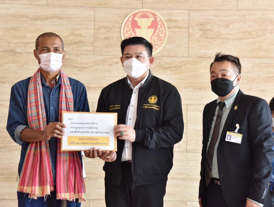 นายสิระ เจนจาคะ ประธานคณะ กมธ.การกฎหมาย การยุติธรรมและสิทธิมนุษยชน และคณะ รับยื่นหนังสือจาก นายสมชาย ระภาณุสิทธิ์ ผู้ใหญ่บ้านหมู่ 10 ต.ลาดสวาย จ.ปทุมธานี และตัวแทนชาวบ้านชุมชนวัดเขียนเขต เรื่อง ขอความเป็นธรรมให้กับพระธรรมรัตนาภรณ์ เจ้าคณะจังหวัดปทุมธานี