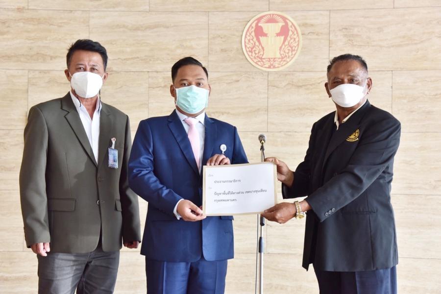 วันอังคารที่ 5 ตุลาคม 2564 เวลา 11.50 นาฬิกา ณ จุดรับยื่นหนังสือ ชั้น 1 (โซนกลาง) อาคารรัฐสภา นายณัฐชา บุญไชยอินสวัสดิ์ ประธาน คณะ กมธ.การพัฒนาการเมือง การสื่อสารมวลชน และการมีส่วนร่วมของประชาชน รับยื่นหนังสือจาก นายสุทิน อ่อนฟุ้ง ประธานสภาองค์กรชุมชนเขตบางขุนเทียน เพื่อขอให้แก้ไขปัญหาพื้นที่ใต้ทางด่วน เขตบางขุนเทียน กรุงเทพฯ เนื่องจากพื้นที่ดังกล่าวเป็นพื้นที่ชุมชน แต่กลับมีแหล่งน้ำลึกที่สามารถเพาะพันธุ์ยุงลายจำนวนมาก อีกทั้งยังเป็นแหล่งมั่วสุมสิ่งเสพติดของเยาวชนในพื้นที่อีกด้วย จึงขอเรียกร้องให้หน่วยงานที่เกี่ยวข้องเข้ามาแก้ไขปัญหาในพื้นที่ และปรับภูมิทัศน์ให้สามารถใช้ประโยชน์ในชุมชนได้