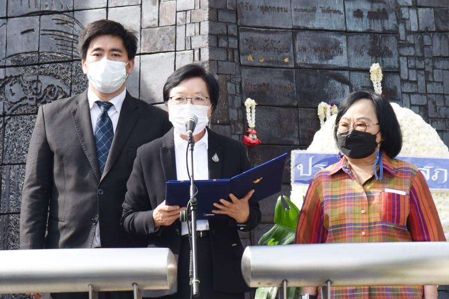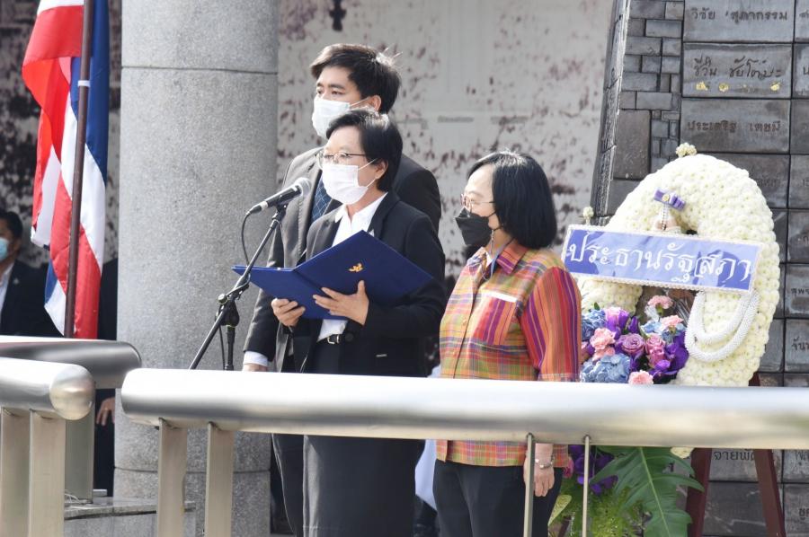 ประธานสภาผู้แทนราษฎร มอบหมายให้ น.ส.ผ่องศรี ธาราภูมิ ผู้เชี่ยวชาญประจำตัวสมาชิกสภาผู้แทนราษฎร นางรัชฎาภรณ์ แก้วสนิท อดีตสมาชิกสภาผู้แทนราษฎร และนายแทนคุณ จิตต์อิสระ เลขานุการคณะทำงานทางการเมืองของประธานสภาผู้แทนราษฎร เป็นผู้แทนวางพวงมาลาและกล่าวรำลึกฯ ในงานรำลึก 14 ตุลา ประจำปี 2564