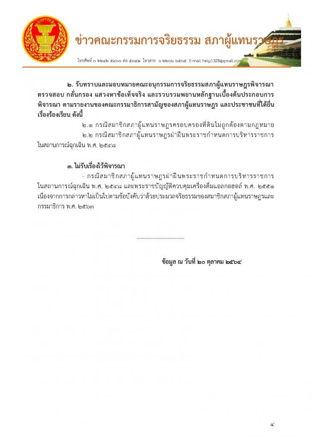 ประชุมคณะกรรมการจริยธรรมสภาผู้แทนราษฎร ครั้งที่ 4/2564 ผ่านสื่ออิเล็กทรอนิกส์