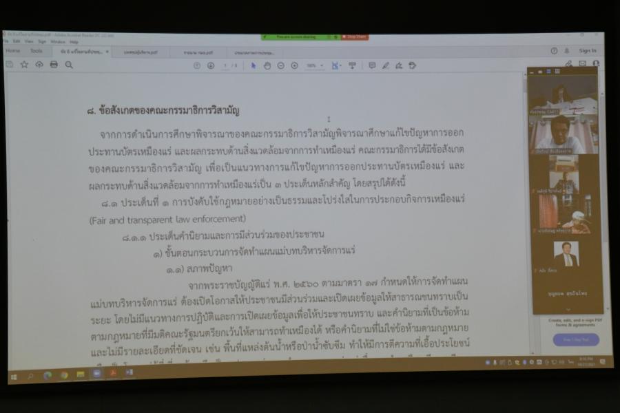 ประชุมคณะ กมธ.วิสามัญพิจารณาศึกษาแก้ไขปัญหาการออกประทานบัตรเหมืองแร่และผลกระทบด้านสิ่งแวดล้อมจากการทำเหมืองแร่ ครั้งที่ 44 ผ่านสื่ออิเล็กทรอนิกส์